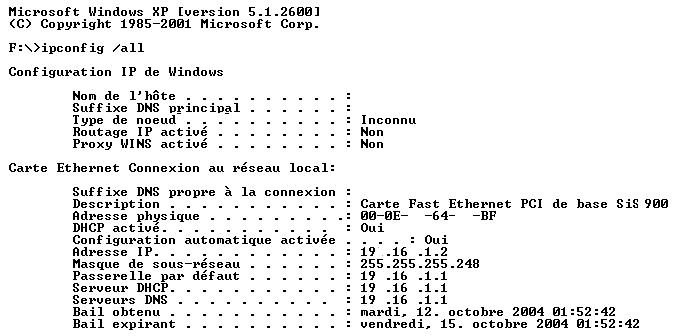 ipconfig / all : pour connaître le numéro IP de votre connection