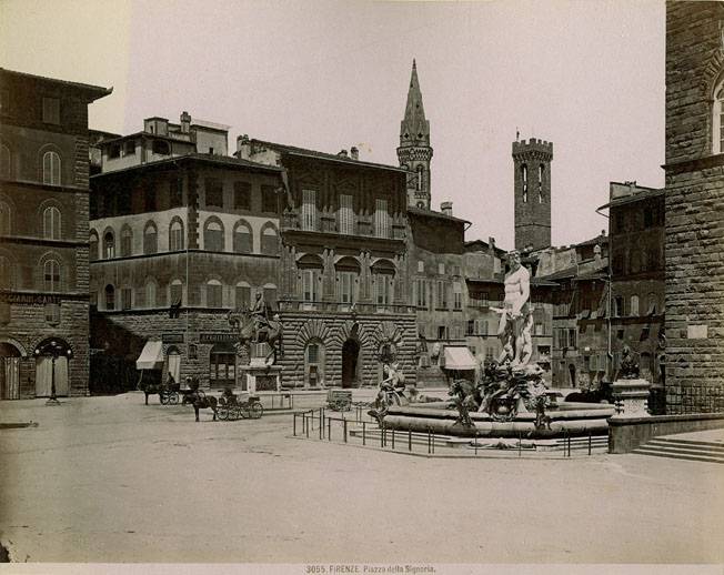 Devant la fontaine se trouve une dalle qui marque l'endroit où Savonarole fut brûlé